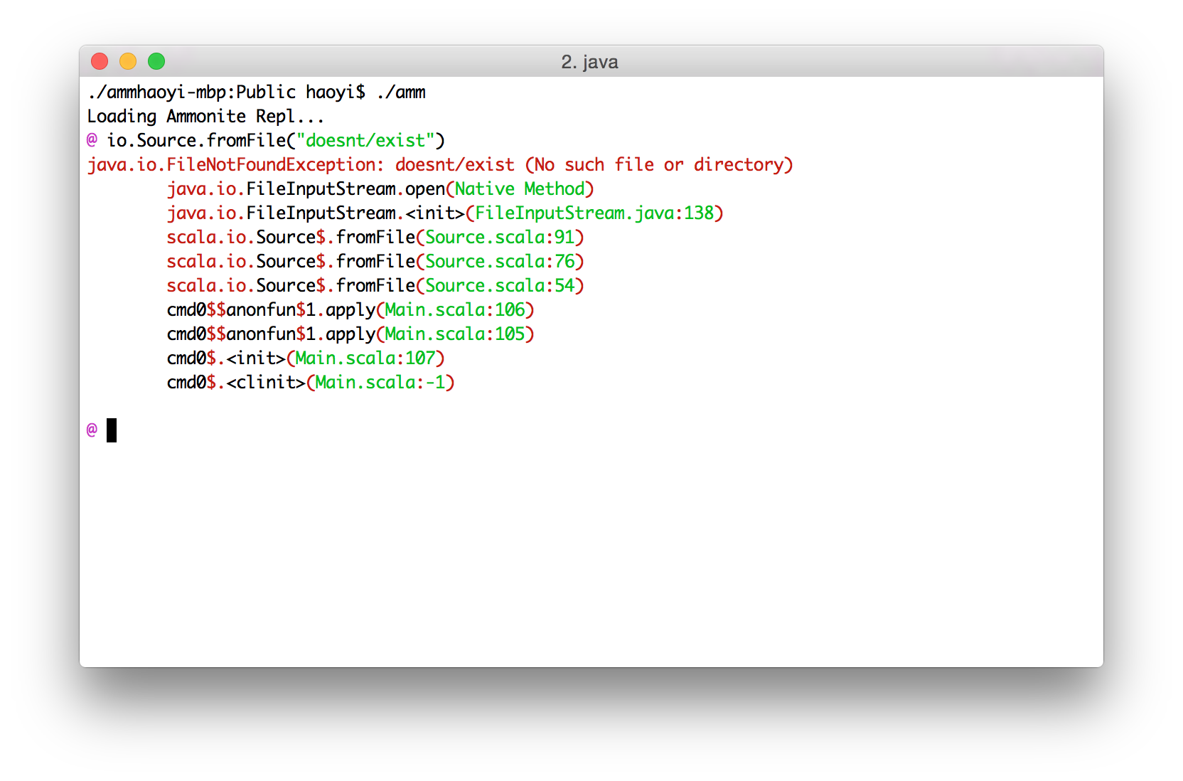 (resources and InputStreams)lsing large directories./amm using relative paths #353repl no longer borks your session.AmmoniteFrontEnd: Ctrl-T